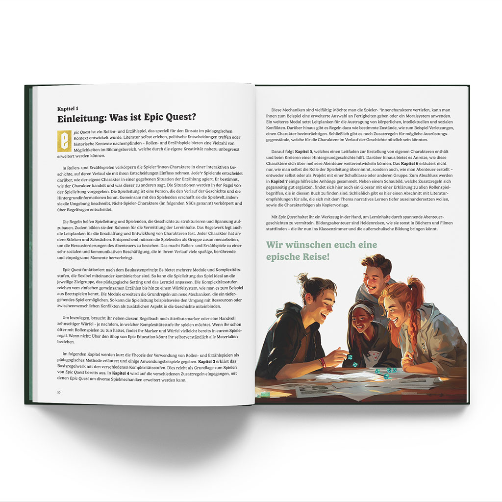 Mit Epic Quest wird Bildung zum Erlebnis! Das Bildungsabenteuer ist ein Rollen- und Erzählspiel, dass es Pädagog*innen ermöglicht, junge Menschen auf eine aufregende Lernreise zu schicken. Dank spannender, interaktiver Geschichten wird Lernen zum Erlebnis und motiviert zu mehr Beteiligung. Das Gelernte bleibt bei den Schüler*innen durch immersives Erleben des Lehrstoffs nachhaltig im Gedächtnis.