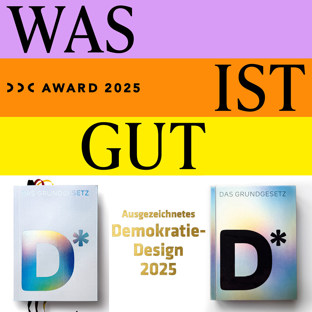 Das Re-Design unseres Grundgesetz in gleich zwei Versionen erhielt beim DDC Award 2025 des Deutschen Designer Club eine Auszeichnung...